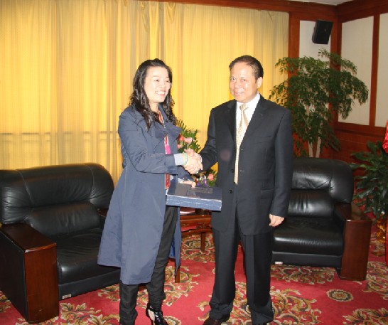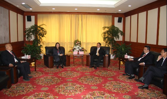 荆门市万勇市长接见常务副会长、宜昌市福州商会会长柯淑金、副会长林锐曦和常务秘书长陈玉荣。