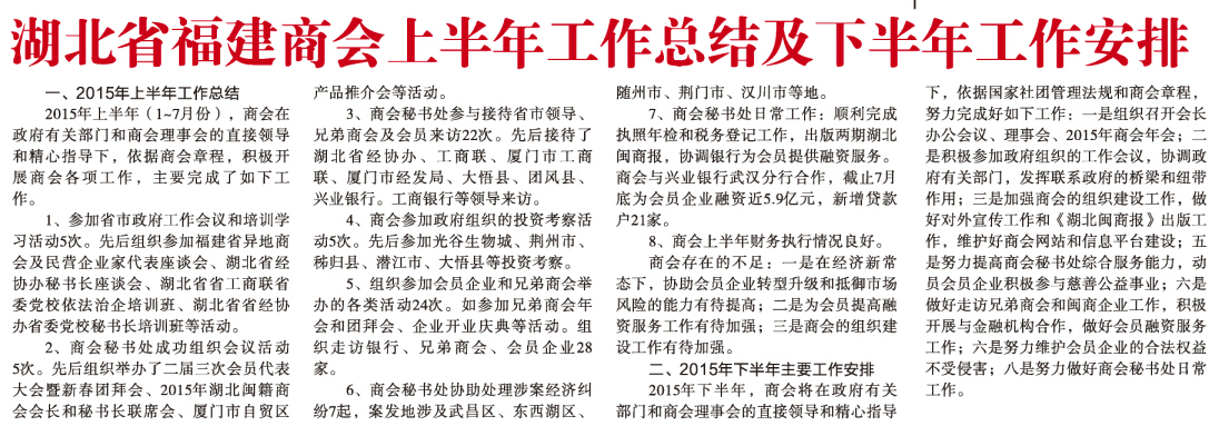 商会2015上半年工作总结及下半年工作安排